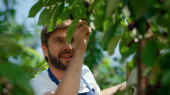 Zdjęcie "Uśmiechnięty pracownik gospodarstwa zbierający owoce wiśni w słonecznym zielonym portrecie gospodarstwa" może być wykorzystywane do celów osobistych i komercyjnych zgodnie z warunkami zakupionej licencji Royalty-free. Obraz jest dostępny do pobrania w jakości wysokiej rozdzielczości do 5760x3840.