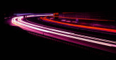 Nocne światła. Światła poruszających się samochodów w nocy. długi czas ekspozycji czerwony, niebieski, zielony, pomarańczowy.