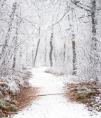 Ośnieżone zimowe krajobrazy leśne. Zimowa bajka.