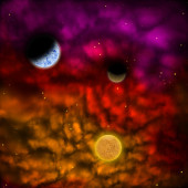 Zdjęcie "Mgławica i gwiazda z planetami w przód" może być wykorzystywane do celów osobistych i komercyjnych zgodnie z warunkami zakupionej licencji Royalty-free. Obraz jest dostępny do pobrania w jakości wysokiej rozdzielczości do 5760x3840.