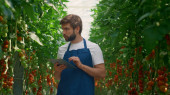 Pracownicy gospodarstw rolnych sprawdzają tabletki roślin w szklarni. Kontrola jakości