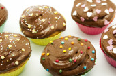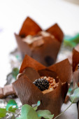 Babeczki śmietankowe. ciasta czekoladowe na tle.Deser czekoladowy. Różne słodkie stoły. Słodycze i desery. Wyroby piekarskie i desery