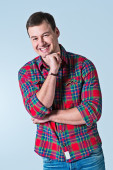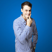 przypadkowy mężczyzna w koszuli na niebieskim tle.