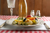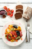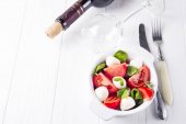sałatka grecka z kieliszek wina serwowane w tablicy