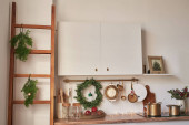 Uroczyste Boże Narodzenie urządzone kuchnia licznik z kuchenką