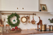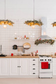 Uroczyste Boże Narodzenie urządzone kuchnia licznik z kuchenką