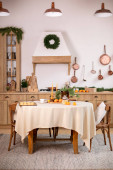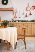 Uroczyste Boże Narodzenie nowoczesna kuchnia z dużym drzewem