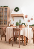 Uroczyste Boże Narodzenie nowoczesna kuchnia z dużym drzewem