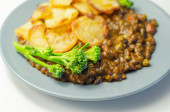 Zdjęcie "Wyciągnięta wieprzowina w sosie barbecue stylu z grilla fasoli z przyprawionymi frytkami i świeżych warzyw, amerykański posiłek" może być wykorzystywane do celów osobistych i komercyjnych zgodnie z warunkami zakupionej licencji Royalty-free. Obraz jest dostępny do pobrania w jakości wysokiej rozdzielczości do 5760x3840.
