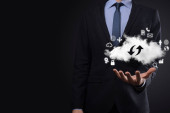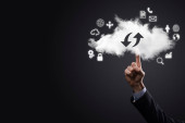 Zdjęcie "Technologia chmury. znak przechowywania chmury z dwoma strzałkami w górę iw dół po ciemku. Chmura obliczeniowa, duże centrum danych, przyszła infrastruktura, cyfrowa koncepcja ai. Wirtualny symbol hostingu." może być wykorzystywane do celów osobistych i komercyjnych zgodnie z warunkami zakupionej licencji Royalty-free. Obraz jest dostępny do pobrania w jakości wysokiej rozdzielczości do 5760x3840.