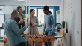 Mężczyzna gra w piłkarzyki przy stole z kobietą i przegranej