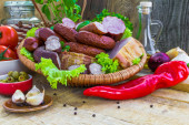 Zdjęcie "asortyment wędlin kiełbasa boczek warzyw" może być wykorzystywane do celów osobistych i komercyjnych zgodnie z warunkami zakupionej licencji Royalty-free. Obraz jest dostępny do pobrania w jakości wysokiej rozdzielczości do 5760x3840.