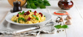 Zdjęcie "Tłuczone ziemniaki z masłem, zielonym groszkiem, cebulą, bazylią na rustykalnym drewnianym tle. Widok z bliska." może być wykorzystywane do celów osobistych i komercyjnych zgodnie z warunkami zakupionej licencji Royalty-free. Obraz jest dostępny do pobrania w jakości wysokiej rozdzielczości do 5760x3840.
