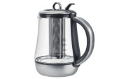 Szkło, elektryczność, nowoczesny, przejrzysty czajnik na białym tle. Zbliżenie.
