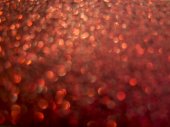 Tekstura tworzona z owalnych obiektów czerwonych. Efekt uzyskano poprzez fotografowanie powierzchni brokatu w skali makro bez ustawiania ostrości.