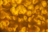 Tekstura wykonana z owalnych żółtych obiektów. Efekt uzyskano poprzez fotografowanie powierzchni brokatu w skali makro bez ustawiania ostrości.