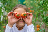 Zdjęcie "Dziecko zbiera pomidory w ogrodzie. Wybiórcze skupienie. Dzieciaku.." może być wykorzystywane do celów osobistych i komercyjnych zgodnie z warunkami zakupionej licencji Royalty-free. Obraz jest dostępny do pobrania w jakości wysokiej rozdzielczości do 5760x3840.