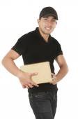 człowiek szczęśliwy przyjazny dostawy pewność posiadania koperty manila