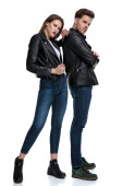 Młoda para seksowny pozowanie Studio na czarnym tle