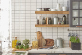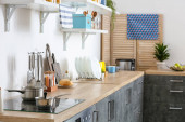 Zdjęcie "Piękne wnętrze stylowej kuchni" może być wykorzystywane do celów osobistych i komercyjnych zgodnie z warunkami zakupionej licencji Royalty-free. Obraz jest dostępny do pobrania w jakości wysokiej rozdzielczości do 5760x3840.