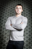 mięśni młody kaukaski przystojny mężczyzna z kapturem