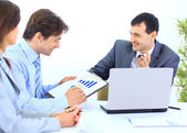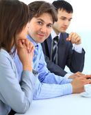 zbliżenie ładny interesu młody uśmiechający się w spotkaniu z jej colleag