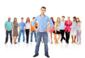 Zdjęcie "Grupa dorywczo szczęśliwy uśmiechający się i stały na białym tle nad białym bac" może być wykorzystywane do celów osobistych i komercyjnych zgodnie z warunkami zakupionej licencji Royalty-free. Obraz jest dostępny do pobrania w jakości wysokiej rozdzielczości do 5760x3840.