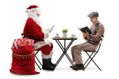 Zdjęcie "Święty Mikołaj i starsza kobieta siedząca przy stole i czytająca książki na białym tle" może być wykorzystywane do celów osobistych i komercyjnych zgodnie z warunkami zakupionej licencji Royalty-free. Obraz jest dostępny do pobrania w jakości wysokiej rozdzielczości do 5760x3840.