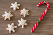 Piernikowe ciasteczka. Świąteczna kartka. Koncepcja piekarni. Przestrzeń kopiowania