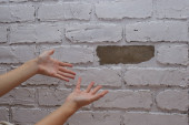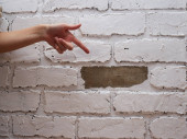 Uszkodzenie ściany tynkiem dekoracyjnym wskazuje na awarię.