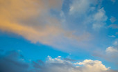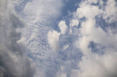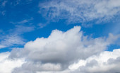 Błękitne niebo i białe chmury unosiły się na niebie w pogodny dzień z ciepłym słońcem połączonym z chłodnym wiatrem wiejącym na ciało powodując cudowne orzeźwiające jak raj.