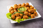 Zdjęcie "Ukąszenia pieczonego kurczaka z pomidorowym dipem, posiekaną i ukształtowaną gotowaną pierś kurczaka z przyprawą z pieczonego kurczaka w bułce tartej, fast food" może być wykorzystywane do celów osobistych i komercyjnych zgodnie z warunkami zakupionej licencji Royalty-free. Obraz jest dostępny do pobrania w jakości wysokiej rozdzielczości do 5760x3840.