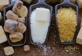 różne rodzaje cukru - brązowy, biały i rafinacji cukru