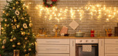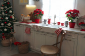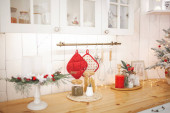 Zdjęcie "Klasyczna drewniana skrzynia z szufladami jest pięknie urządzona na Boże Narodzenie. Choinka z girlandą i dekoracjami, szyszki, świece, ozdobić klatkę piersiową szuflady w pobliżu okna." może być wykorzystywane do celów osobistych i komercyjnych zgodnie z warunkami zakupionej licencji Royalty-free. Obraz jest dostępny do pobrania w jakości wysokiej rozdzielczości do 5760x3840.