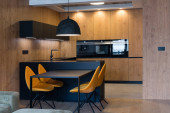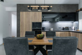 Zdjęcie "Kuchnia wnętrza nowoczesnego mieszkania" może być wykorzystywane do celów osobistych i komercyjnych zgodnie z warunkami zakupionej licencji Royalty-free. Obraz jest dostępny do pobrania w jakości wysokiej rozdzielczości do 5760x3840.