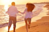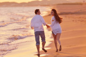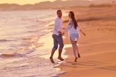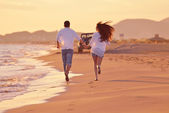 Młoda para na plaży zabawy