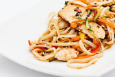 Kurczak Hakka makaron lub Schezwan lub Szechwan makaron serwowane w misce z pałeczkami. ukierunkowanie selektywne