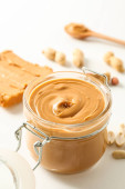 Masło orzechowe w słoiku. Śniadanie. Żywność wegetariańska
