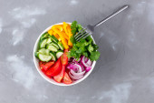 Zdjęcie "Pojęcie dostawy żywności z sałatką warzywną na białym tle" może być wykorzystywane do celów osobistych i komercyjnych zgodnie z warunkami zakupionej licencji Royalty-free. Obraz jest dostępny do pobrania w jakości wysokiej rozdzielczości do 5760x3840.