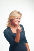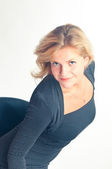 model na niebieskim tle