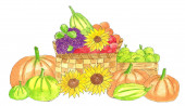 Zdjęcie "Ręcznie malowany układ słonecznika z dyniami." może być wykorzystywane do celów osobistych i komercyjnych zgodnie z warunkami zakupionej licencji Royalty-free. Obraz jest dostępny do pobrania w jakości wysokiej rozdzielczości do 5760x3840.