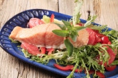 Zdjęcie "Pieczony filet z łososia i sałatka" może być wykorzystywane do celów osobistych i komercyjnych zgodnie z warunkami zakupionej licencji Royalty-free. Obraz jest dostępny do pobrania w jakości wysokiej rozdzielczości do 5760x3840.