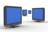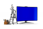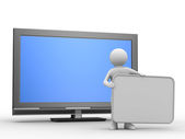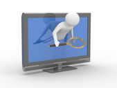 TV i mężczyzna na białym tle. na białym tle obraz 3d