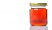 jagód, truskawek i pomarańczowe owoce butelkowane dżem na białym tle