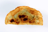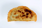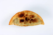 Chebureki placki izolowane na białym tle.Rosyjskie smażone placki mięsne