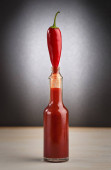 Sos gorący, czerwona papryka chili i płatki w słoiku