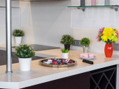 Zdjęcie "Drewniane półki na białej ścianie. Wystrój wnętrz. Rośliny zielone." może być wykorzystywane do celów osobistych i komercyjnych zgodnie z warunkami zakupionej licencji Royalty-free. Obraz jest dostępny do pobrania w jakości wysokiej rozdzielczości do 5760x3840.
