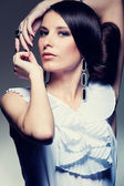 Piękna Brunetka na szarym tle