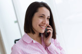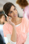 młode ładne kobiety biznesu z telefonu komórkowego w jej biurze.