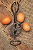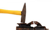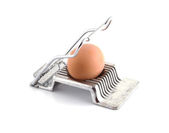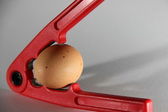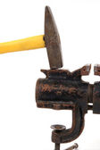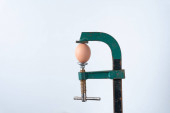 jajko uwięziony w stary zardzewiały metaloplastyka vice, na białym tle